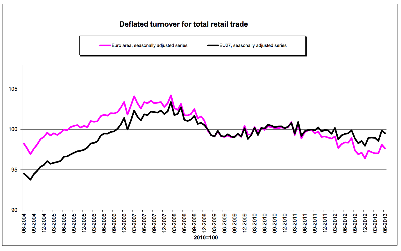 - European retail trade is below. Although the last month was down a little bit, the last six months in the aggregate appear to have stopped trending down.